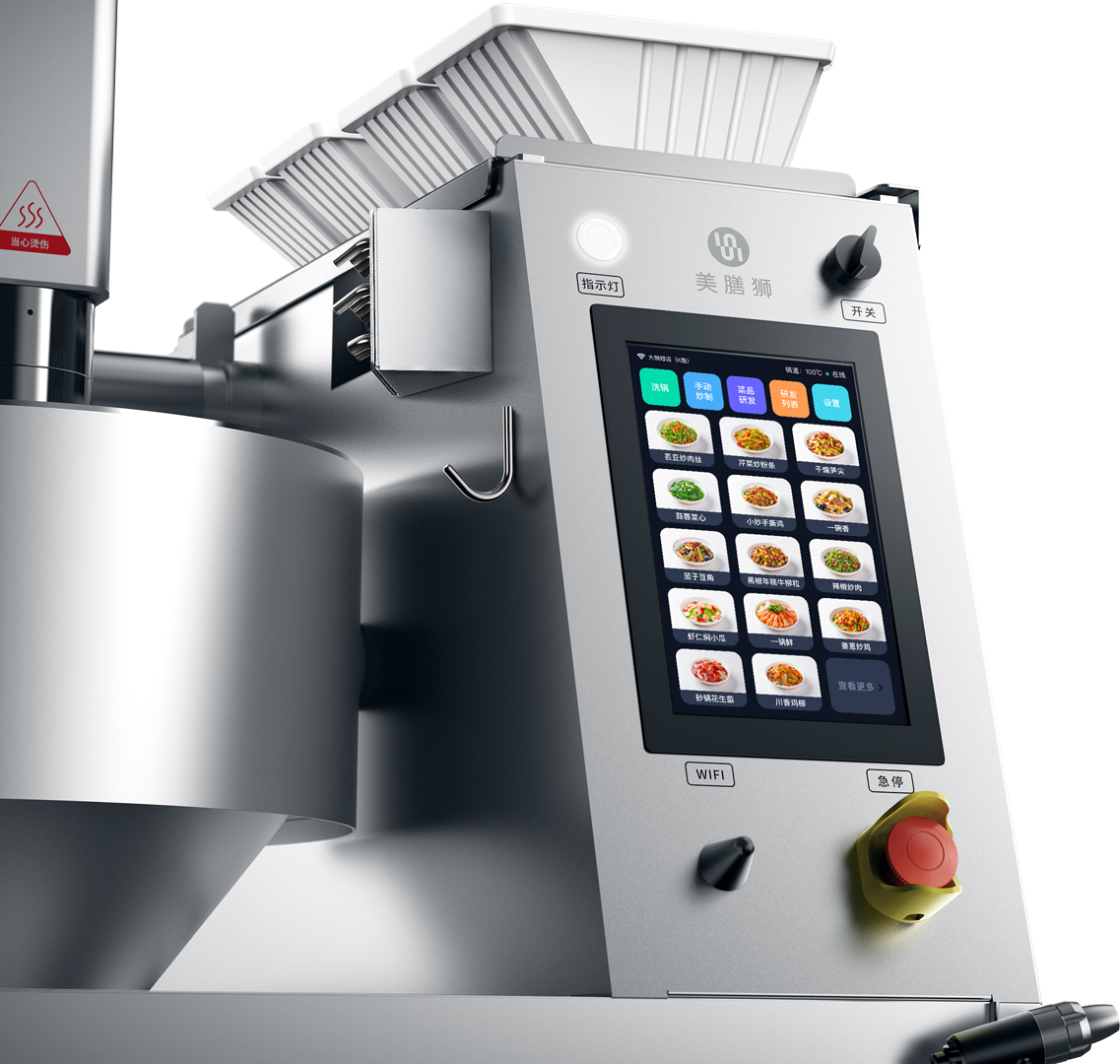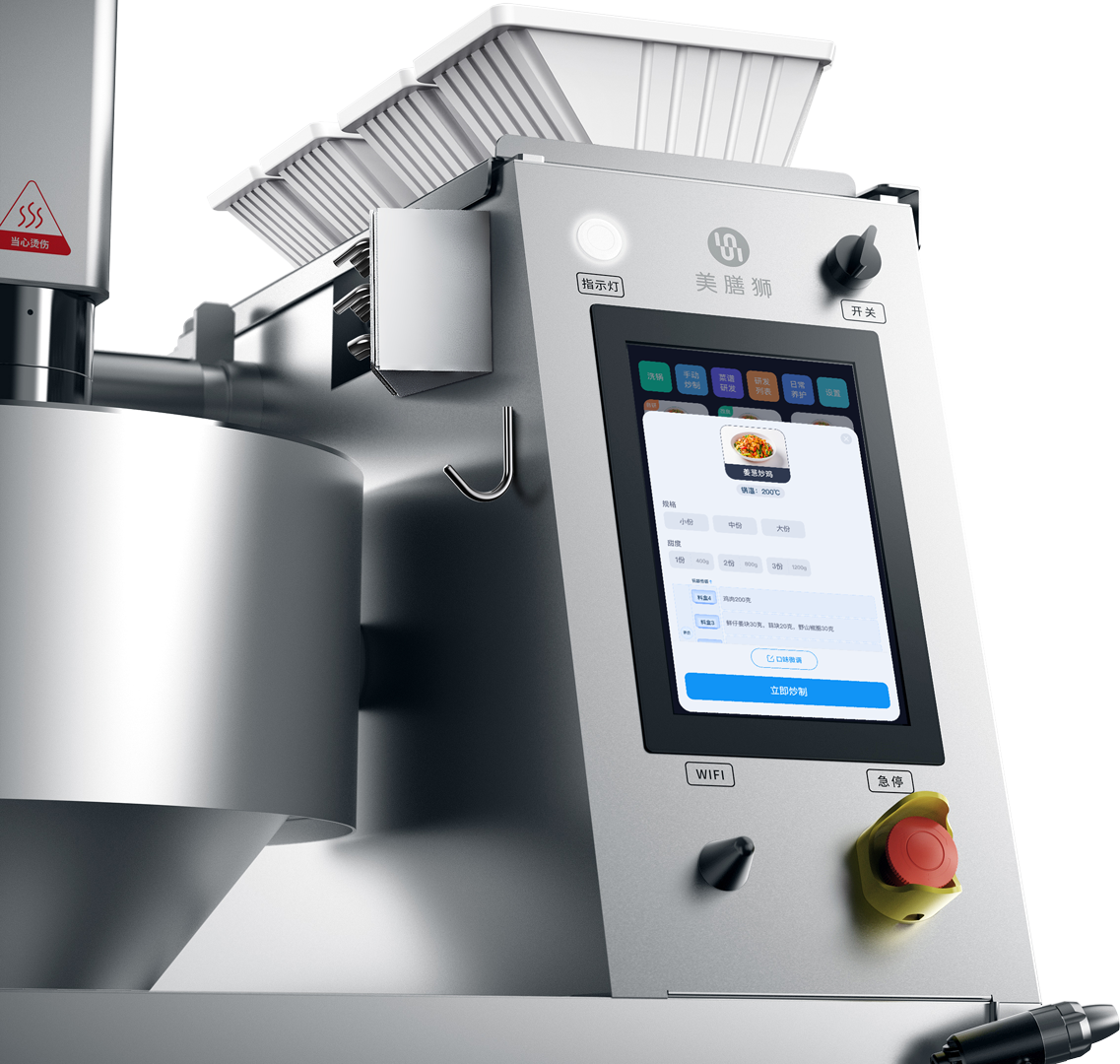 不同于其他同类产品,美膳狮通过先进的控制系统与自研炒制算法。可以完全掌控炒制过程中菜品的变化,并精准控制炒制节奏,保证出品远超行业标准,在磐石机芯的加持下,炒制过程中的温差不超1%,高猛活力稳定持久。