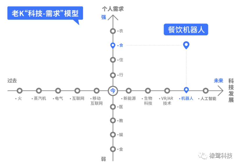 在老K看来,一些TOP级的互联网公司成为世界级企业,正是踏中了坐标系左上象限“互联网”(包括移动互联网)与“食”、“行”等构成的天时区间,而WHX踏中的,则是坐标系右上象限的“机器人”与“食”构成的这个天时区间。