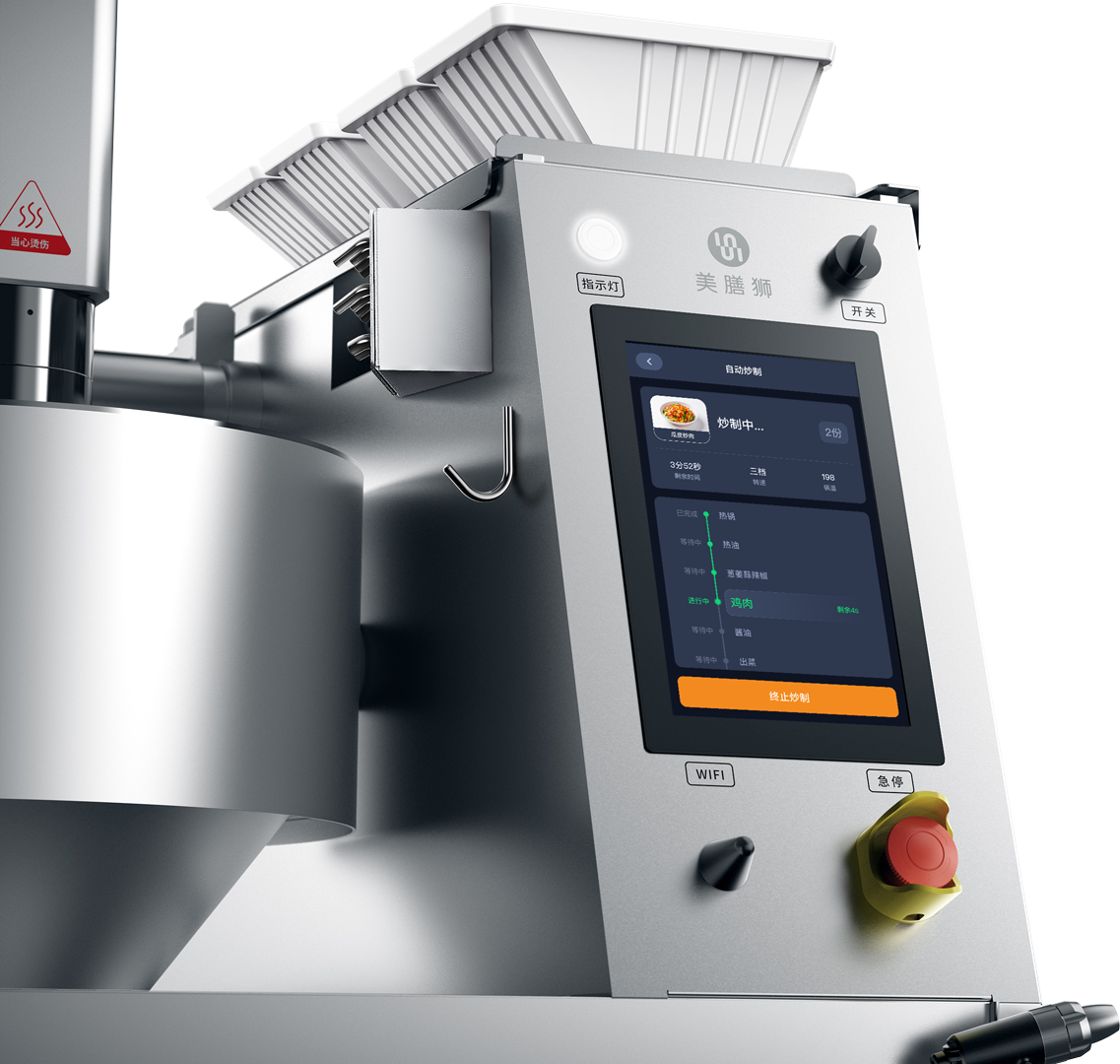 不同于其他同类产品,美膳狮通过先进的控制系统与自研炒制算法。可以完全掌控炒制过程中菜品的变化,并精准控制炒制节奏,保证出品远超行业标准,在磐石机芯的加持下,炒制过程中的温差不超1%,高猛活力稳定持久。
